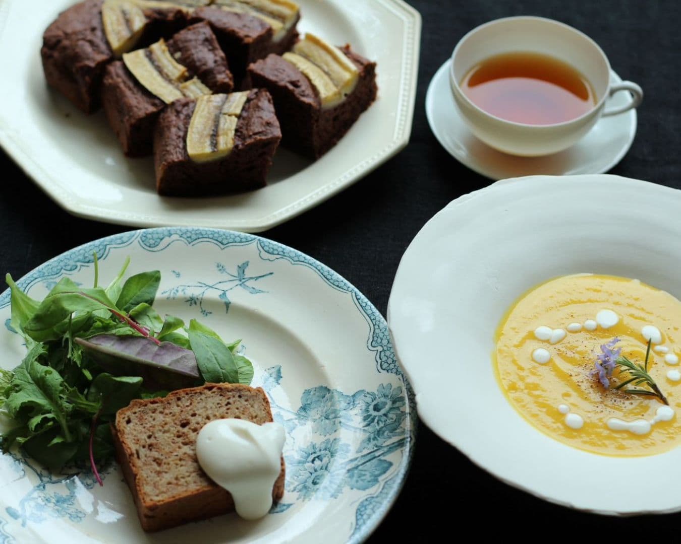 当日は2種類の米粉のバナナブレッド、サラダ、スープを試食していただきます。